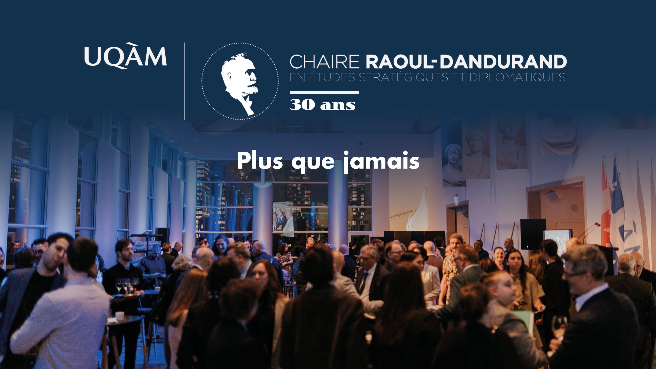 Cette année, la Chaire Raoul-Dandurand en études stratégiques et diplomatiques célèbre son 30e anniversaire ! Pour marquer cette étape importante, nous avons souhaité recueillir des témoignages et voeux de personnes qui ont accompagné, observé et fait vivre la Chaire au fil des ans. Des voix diverses pour souligner le chemin parcouru et l’importance de son rôle dans la société québécoise.